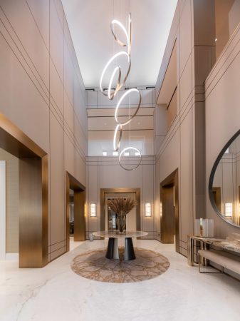 Special attention has been given to architectural lighting, which enhances the structure after sunset and adds depth, balance, and character to the façade throughout different times of day.